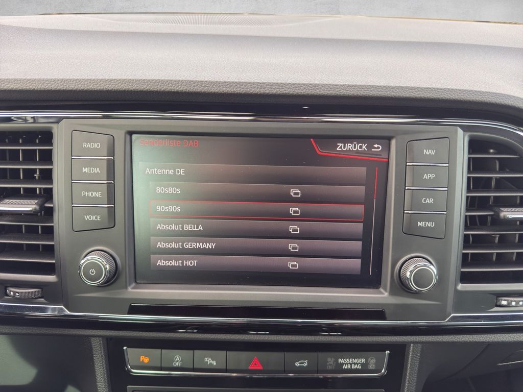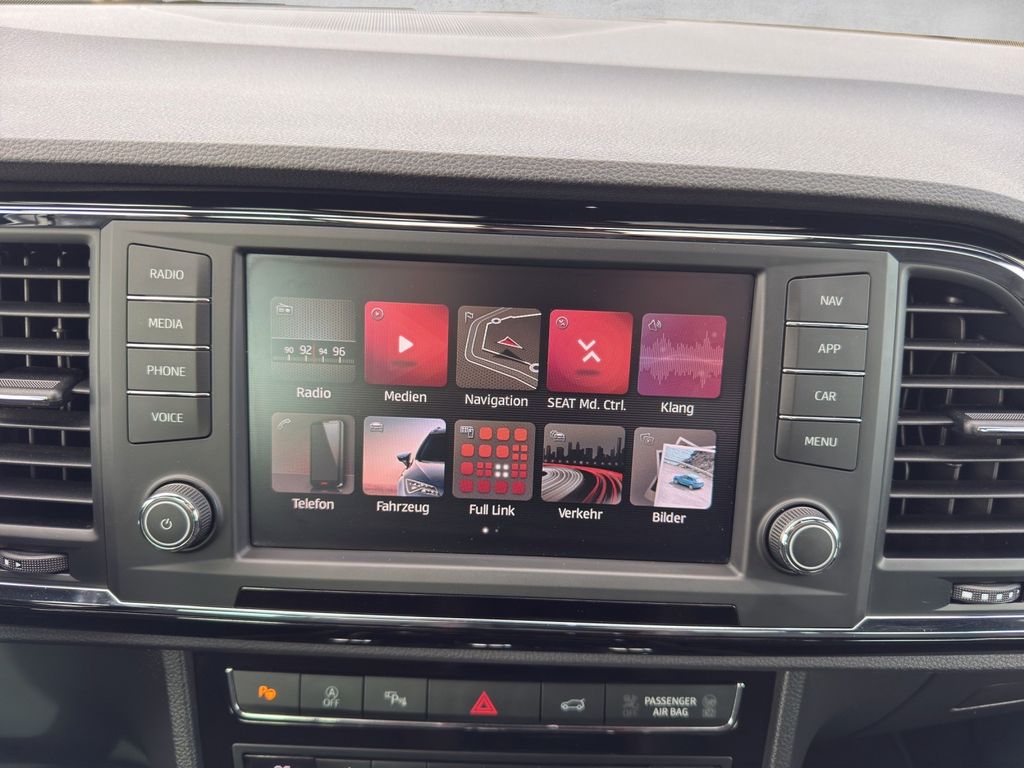 3. Bremsleuchte, Airbag Beifahrerseite abschaltbar, Airbag Fahrer-/Beifahrerseite, Alcantara-Paket, Antriebs-Schlupfregelung (ASR), Antriebsart: Allradantrieb, Außenspiegel elektr. verstell‑, heiz- und anklappbar mit Spiegelabsenkung und Welcome Light, Außenspiegel elektr. verstell‑, heiz- und anklappbar, beide, Außenspiegel lackiert, Außenspiegel und Türgriffe außen in Wagenfarbe, Blinkleuchte in Außenspiegel integriert, Bordcomputer, Bremsassistent, Chromleisten an Seitenfenstern, Dachhimmel schwarz, Dachreling, Doppeltonhorn, Fahrassistenz-System: Berganfahr-Assistent (Hill-Holder), Fahrassistenz-System: Fahrprofilauswahl (SEAT Drive Profile), Fahrassistenz-System: Müdigkeitserkennung, Fahrassistenz-System: Umfeldbeobachtungssystem (Front assist) mit City-Notbremsfunktion, Fensterheber elektrisch vorn + hinten, Fußraumbeleuchtung vorn, Gepäckraumabdeckung / Rollo, Handschuhfach beleuchtet, Heckleuchten LED, Innenausstattung: Chrom-Applikationen, Innenraumlicht-Paket LED, Isofix-Aufnahmen für Kindersitz, Karosserie: 5‑türig, Klimaanlage Climatronic 2‑Zonen, Knieairbag Fahrerseite, Komfortsitze, Kopf-Airbag-System, Kopfstützen hinten (3‑fach), Kopfstützen vorn, Lendenwirbelstütze Sitz vorn links, verstellbar, Lendenwirbelstütze Sitz vorn rechts, verstellbar, Lendenwirbelstütze verstellbar, Lenkrad (Sport/Leder) mit Multifunktion, LM-Felgen, Mittelarmlehne hinten, Mittelkonsole vorn mit Mittelarmlehne, Becherhalter, Ablagebox und Luftausströmer hinten, Motor 2,0 Ltr. — 140 kW TSI, Parkbremse elektrisch, Radstand 2630 mm, Reifenkontroll-Anzeige, Rücksitzlehne klappbar, Rücksitzlehnen umklappbar mit Fernentriegelung im Kofferraum, Schadstoffarm nach Abgasnorm Euro 6, Schalt-/Wählhebelgriff Leder, Scheinwerfer LED, Seitenairbag, Seitenscheiben hinten und Heckscheibe abgedunkelt, Sitz vorn links höhenverstellbar, Sitz vorn rechts höhenverstellbar, Start/Stop-Anlage, Stau-/Ablagefach unter Sitz vorn links, Steckdose (12V-Anschluß) vorn, Stoßfänger FR-Design, Verglasung getönt, Verzurrösen Koffer-/Laderaum, Wärmeschutzverglasung—- Unser Versprechen an Sie: